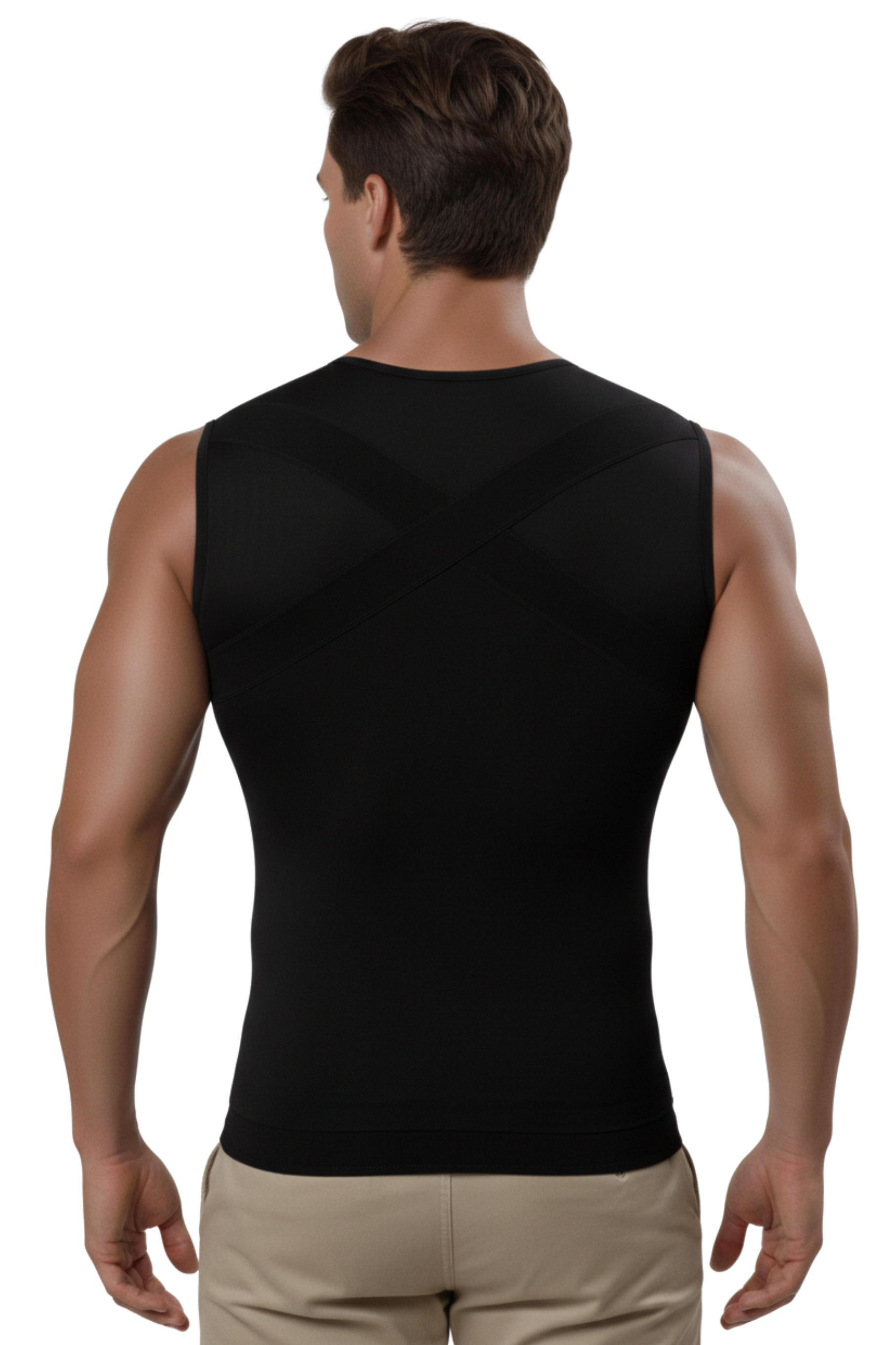 High compression men's powernet vest girdle, ideal for daily and post-surgical use. Its design allows you to shape your figure. It helps you in the recovery process from your surgery. High back coverage, waist shaping, abdomen.