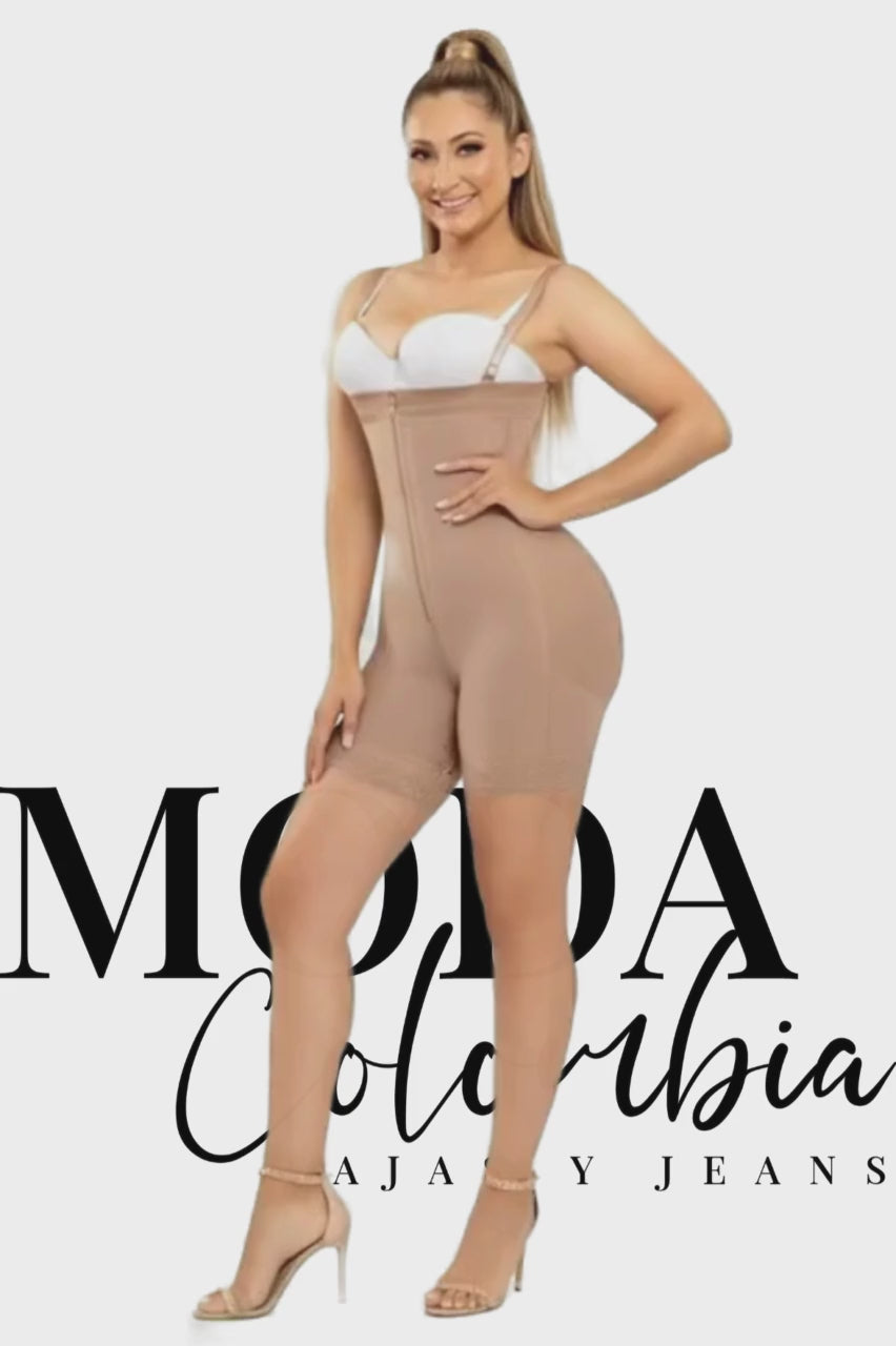 High compression Strapless girdle made of powernet with cold touch and anti-allergic internal lining, High compression Butt Lifter Short Girdle with waist control. Abdomen flattens upper and lower. Front zipper and intimate part open.
