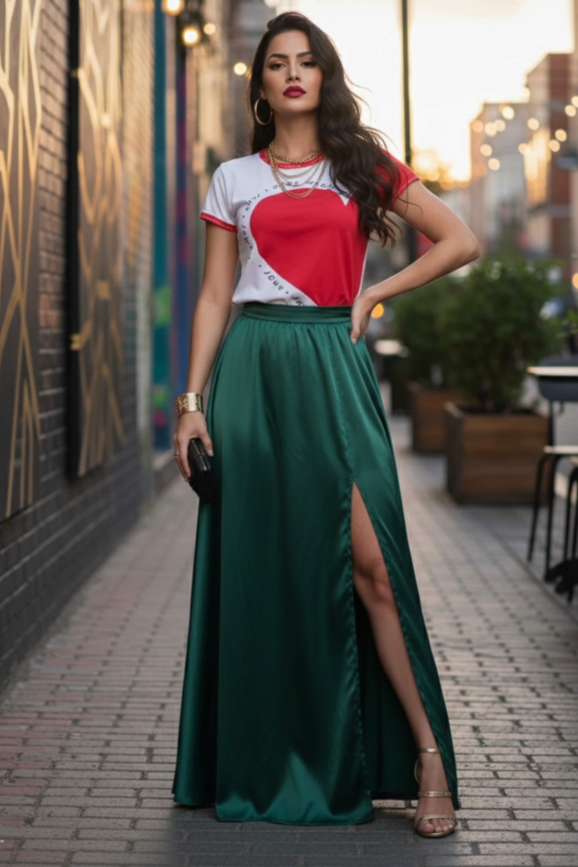 Estilo: Estampado asimétrico de medio corazón en rojo vibrante.